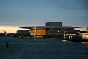 Scenen ligger skjult bag en gylden ahornskal, der som en enorm, svævende kuppel møder én i Operaens foyer. Herfra er der også en opsigtsvækkende udsigt over havnen og byens tårne. Operabygningen er placeret i havnen direkte over for Amalienborg og sætter dermed et markant punktum for enden af den akse, der løber fra Marmorkirken gennem Amalienborg og Amaliehaven over havneløbet og ind gennem glasfacaden for at ende lige midt på Store Scene.