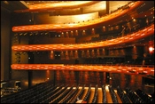 I lighed med teatersalens yderside er balkonbrystningerne beklædt med ahorn finer.