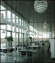 Det luftige foyerinteriør med dekorative armaturer udformet af Olafur Eliasson.
