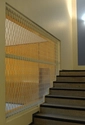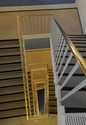 Udover at dørpartiet fra aulaen til hovedtrappen på hver etage er udført i glas, er der også anbragt et vindue for at få så meget dagslys til trapperummet som muligt.