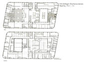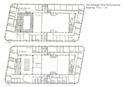 Grundplanen danner et parallelogram med to gårdrum, hvoraf det ene er overdækket og indeholder Overformynderiets aula.
