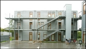 Bebyggelsen er opført af moduler på 2,80 x 2,80 meter og boligenheder på 90 m2. Bebyggelsen er opdelt i tre åbne storkarréer, som hver især knyttes sammen og identificeres omkring et pladsrum placeret i forbindelse med det nord- og sydgående bevægelsesforløb.