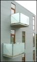 De øvre boliger er udstyret med altaner der har glasbrystninger.