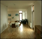 Køkken og badeværelse er placeret i en kerne, om hvilken adgang og møblering frit kan foregå, hvilket giver vide rammer for individuel indretning.