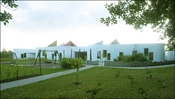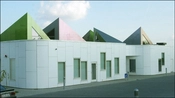 Facade mod øst. I forgrunden ses børnehavens store legeområde.