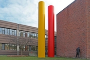 Ved Panum Instituttets vestfacade, langs Nørre Allé står tre figurer støbt i bronze, af Claus Carstensen. Temaet for figurerne er "territorier". Kunstneren, der pisser sit territorium af, kunstneren, der peger stående på en stol og ejer hele verden, og kunstneren, der sidder op ad væggen med hænderne henover hovedet og kæmper en indre kamp.