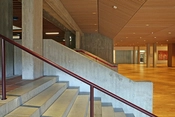 Materialevalget i huset er holdt til beton, mursten, og brunmalede stålplader i eksteriøret. Interiøret er holdt i beton med tydelig træforskallingsmønster, mørke klinker, fyrretræ samt metalelementer i klare farver, farvesat af Tonning Rasmussen.