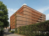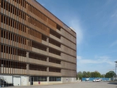 Taget over ramperne er forsynet med 200 kvm solceller, der dækker 20 pct. af husets energiforbrug. Forpladsen til parkeringshuset er en urban plads under ramperne, der danner ramme for et skatermiljø og et opholdsareal.