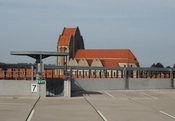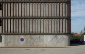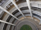 Parkeringshuset med over 600 pladser, udgør første del af udbygningen af hospitalskomplekset på Bispebjerg. Grunden, der ender i en trekantet spids der udgør op- og nedkørselsramperne i en halvcirkulær form ud mod indkørslen, således at man får et firkantet hus op gennem etagern.