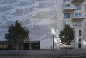 P-hus i Ørestad Syd med plads til 690 biler. Ørestad Syds første p-hus er konstrueret ud fra høje klimastandarder, med et sensorstyret system, som giver bilisterne et hurtigt overblik over, hvor de skal køre hen for at finde en plads. Husets perforerede facade viser på afstand et motiv af biler, men ud over at signalere husets funktion, så skaber perforeringen også en naturlig udluftning. Et af de primære formål med at bygge parkeringsanlæg i Ørestad er, at bilerne ikke skal fylde i gaderne, så byens rum kan bruges til andet end rækker af parkeringspladser.