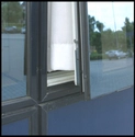 Patienhotellets oplukkelige vinduer er tophængte med glasset anbragt udenpå vinduets træramme.