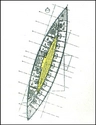 Som et skib trænger patienthotellet sig frem mellem hospitalets øvrige bygninger.