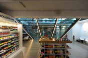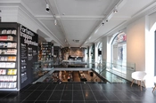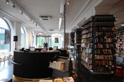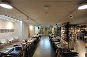 Butikken er indrettet enkelt i hvidt, sort og gråt. Sammen med de røde logotypes signalerer det grundelementerne i avisens layout. Butikken får alligevel masser af farver fra bog- og magasinomslag.