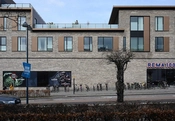 Bebyggelsen indeholder to dagligvarebutikker samt 19 eksklusive lejligheder. Den markante tagprofil fremhæver bygningens karakteristiske, terrasserede form. For at skabe et homogent arkitektonisk udtryk er både butikkernes og boligernes facader udført i samme type teglsten. Eloxerede aluminiumsplader i en gylden farve skaber varme og spil i facaden. Etageboligernes forskydninger skaber et skulpturelt udtryk, og samlet set kommer de ellers meget forskellige funktioner ”butikker og boliger” til at hænge sammen i et homogent og roligt facadeudtryk.