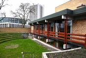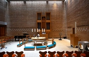 Præstebo Kirke i herlev er bygget i to tempi, idet sydfløjen, som indeholder en større menighedssal og en rummelig kælder, blev opført i 1965 og fungerede som kirkesal indtil den endelige udbygning blev færdig i 1969.