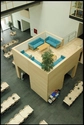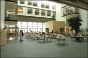 Udspændte forbindelsesgange over fællesrummet.