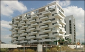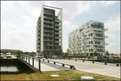 De to huse har hvert sit arkitektoniske udtryk. Tv. Stævnen og th. Broen. Byggeriet omfatter i alt 8.000 m2. og har kostet 100 mio. at opføre.