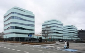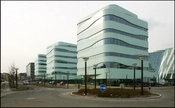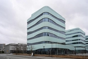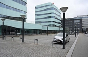 Kontorbygninger lang Dessaus Boulevard i Turborg Havn er udformet som markante punkthuse i seks etager og som alle har et penthouse øverst.