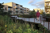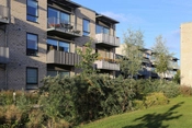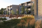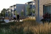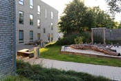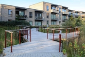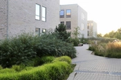 Det 10.700 m² store LAR projekt på udearealerne omkring de nye almene boliger ved Rådhusvænget i Ølstykke håndterer al regnvand på grunden i bede og sø.