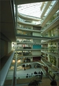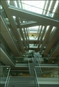 Atriet i det vinkelformede hus strækker sig fra vinkelspids til vinkelspids og vertikalt helt op under glastaget på syvende etage, hvor direktionen bor. Etagerne op til 5. etage er forbundet med et stort trappeanlæg, og gangbroer tværs over atriet gør det nemt at finde den korteste vej i det store hus. Fra 5. sal nås de øverste etager nemmest med en elevator.