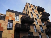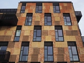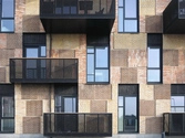 Bebyggelsens facade er opført af upcyclede tegl, blandt andet fra Carlsbergs historiske bryggerier samt fra gamle skoler og industribygninger rundt omkring i Danmark. Facaden er opbygget af udskårne elementer af cementfuget murværk fra 60’erne og 70’erne, som normalt ikke kan genbruges.