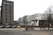 Det arkitektoniske hovedgreb består af en sammenhængende V-formet struktur, der understøttes af to hovedakser, som sikrer korte afstande samt nem og overskuelig wayfinding. Den særlige disposition sørger for godt udsyn til Fælledparken og gode dagslysforhold.