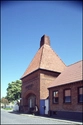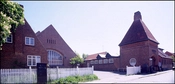 Vue mod den pragtfulde maskinrumshal, der ligesom villaen til bestyreren og badeanlægget er holdt i røde tegl med hvidmalede sprossevinduer.