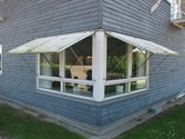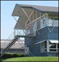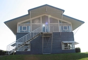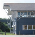 Det udkragede tag understøttes af galvaniserede stålrør.