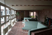 Anlæggets vigtigste del er det kvadratiske kirkerum med 350 faste pladser, hvor to af de høje ydervægge af statiske og lysmæssige grunde er blødt foldede, så de danner små apsider. Rummet får dagslys fra ovenlysskakte. Den midterste og største ovenlysskakt giver et stærkt lys på alterets hvide marmor. Den elektriske belysning består af 803 glødepærer, der hænger over hele rummet som en stjernehimmel. Prædikestolen er placeret i en af nordvæggens buer. Den er udført i et kniplingsmønster i sten, og fremstår i forhold til det øvrige murværk. Alterbordet er i marmor. I resten af bygningen ligger sognefunktioner som møderum, konfirmandstuer og kontorer. Korsene på facaden blev sat op i 2008. De er også tegnet af Inger og Johannes Exner. Begge kors er udført i rustfrit stål og hvidmalet.