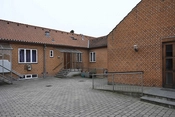 Bygningen er grundmuret på en sokkel af støbt beton.