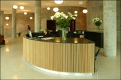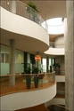 Rundt om betonkærnerne er åbne atrier med fælles mødesteder for de ansatte, mens arbejdspladserne er placeret ved vinduerne sammen med enkelte mødelokaler og enkeltmandskontorer.
