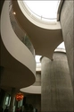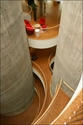 Betoncylindre udgør det centrale, bærende element i bygningen og indeholder elevatortårne, trapper og toialeter.