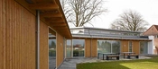 Sognehuset er på i alt 400m2, og i huset findes 2 konfirmandlokaler, som kan slås sammen til en stor sal. Kirkekontoret ligger midt i huset, køkken og 2 mindre kontorer kan slås sammen til mødelokale. Desuden hall og gangareal, der åbner huset op ud til det store grønne område foran præstegården. Fladt zinkbelagt tag.
