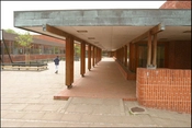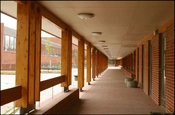 De udvendige gange hører til skolen mindre overbevisende indslag.