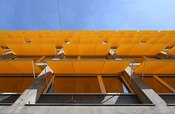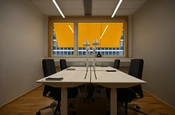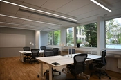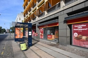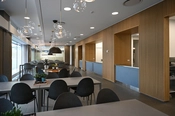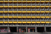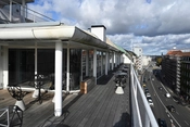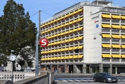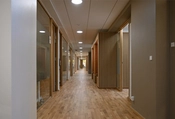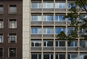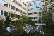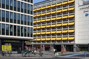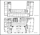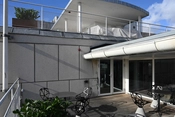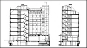 I gadeplan rummer bygningen et stort serviceanlæg med lofter partielt af glasbygningssten.