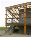 Bygningen er opført som en let konstruktion med spær og søjler af limtræ.