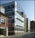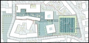 Birk Nielsens Tegnestue og Arkitema opfører i samarbejde både Skives nye Rådhus og Bibliotek (se dette) Til højre ses den store parkeringsplads og i midten af billedet de to kvadratiske bygninger, der tilsammen rummer Biblioteket. Et fælles gangstrøg rummer tre torvedannelser som forbinder hele anlægget.