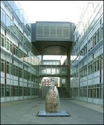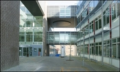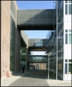 Tre forbindelsesbroer skaber sammenhæng mellem de to bygningskroppe.