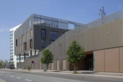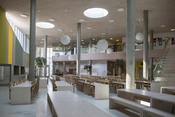 Bygningen henter sin trekantede form fra de tilstødende sider, byen, havnen og fælleden, der hver især har givet inspiration til valg af materialer og farver. Det dobbelthøje spiserum fungerer ikke kun som spisested, men også som et knudepunkt, der binder alle skolens funktioner sammen. Herved bliver spiserummet et samlingssted, hvor eleverne kan mødes på tværs af skolens mange aktiviteter.