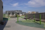 Med bevægelse som et andet af skolens fokusområder, er det vigtigt, at skolens arkitektur lægger op til fysisk aktivitet og leg. Det sker især gennem bygningens spiralform, med trappen, der inviterer op på skolens aktive tagflade. Det næsten 4.000 m² store taglandskab giver adgang til flere af skolens etager. Øverst ligger sportstaget, der giver mulighed for fysisk udfoldelse på løbebanen, i parkourområdet eller i boldburet.