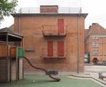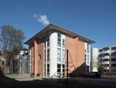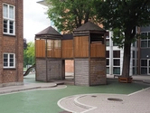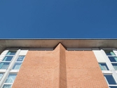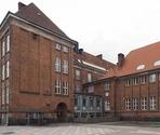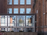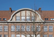 Skolen er opført i røde teglsten i men monumental historicistisk stil, der peger hen mod klassicismen. Hovedbygningen er på tre etager med stort buet midterfelt udsmykket med løvværk og guilander. Skolen er opført som korridorskole.