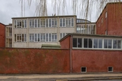 Skolen set fra nord (Samosvej) I den lave forreste bygning bolig for pedellen.