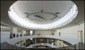 Loftet i aulaen har et kompas styret af en vindrose på taget, så man altid kan se hvad vej vinden blæser.