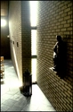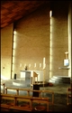 Nærbillede af en af de sydorienterede vinduesspalter i kirkesalen.