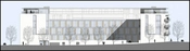 Facade mod Slotssøen. Bag de store vinduer biblioteket, som er 2 etager højt.