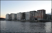 Ud mod havnen ligger bådklubben: Valby og kontrasten mellem de røde bådskure og lejlighedskomplekserne er slående.