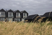 Den anden hustype højere oppe på land spænder bare over en gavl, men er i to etager. Stueetagen rummer køkken, badefaciliteter, soveværelse og terrasse, mens førstesalen har opholdsstue med pejs, balkon og værelse. Også her er der atriumgård og udhus. Husene lægger sig fint ind i klitlandskabet og ligger blot 15 meter fra vandlinjen, hvilket lovgivningen tillader her.