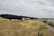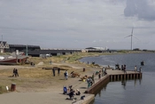 Feriehusene ligger på den indvendige side af slusen mellem Vesterhavet og Ringkøbing Fjord. Formsproget er inspireret af det gamle havnemiljø, som engang lå her, og stadig findes i omgivelserne. De lange rækker af sammenbyggede huse med tagpapbeklædt sadeltag fremstår i sortmalet træ med gavlene vendt mod Ringkøbing fjords strand. Længerne tættest på vandet er i én etage, og spænder over to gavlhuse. I det ene hus er der stue med pejs og åbent køkken, i det andet to værelser, wc, spabad og sauna. Huset åbner sig med terrasse mod vandet og en læfyldt atriumgård mod baghuset, hvor der er indgang fra vejen.