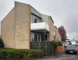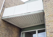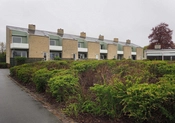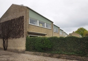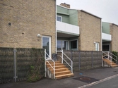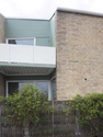 Bebyggelsen består af to rækker kædehuse med tre huse i den ene kæde og seks i den anden. Husene er grundmurede med tilbagetrukne partier, der danner nicher, hvori der er plads til terrasse samt altan, som er tilføjet senere, efter de oprindelige tegninger af Arne Jacobsen. I nicherne er der store vinduer og vægelementer af grønmalede brædder. Husrækkerne har asymmetrisk sadeltag og tagfladerne er belagt med mørkegrå eternit, som afsluttes af en hvidmalet liste. I rygningen findes murede skorstenspiber. Hoveddøren sidder i den fremskudte del mod gaden.