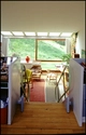 Også indenfor er huset funktionalistisk på grænsen til det snusfornuftige. Fra køkkenet kan maden rækkes ind i spisestuen, der står i åben forbindelse med en stor dagligstue. På førstesalen er en nedfaldsskakt, så vasketøjet ryger direkte ned i vaskekælderen.